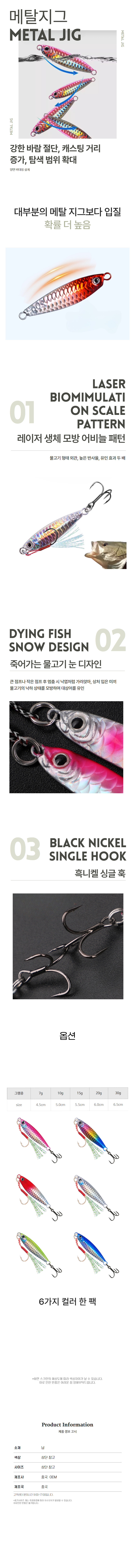 다채로운 메탈지그 6p세트 반짝 낚시 바늘 바다낚시