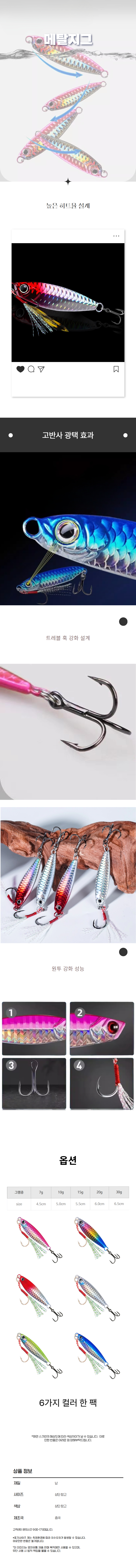 어비늘 패턴 레인보우 메탈지그 6p세트 바다낚시용