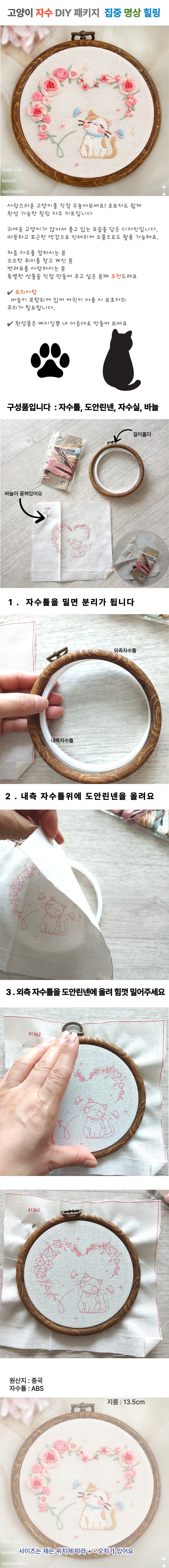 고양이 자수 수예 DIY 키트 집중 명상 힐링